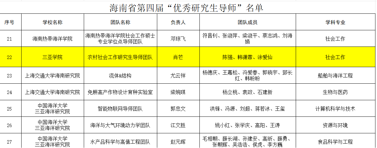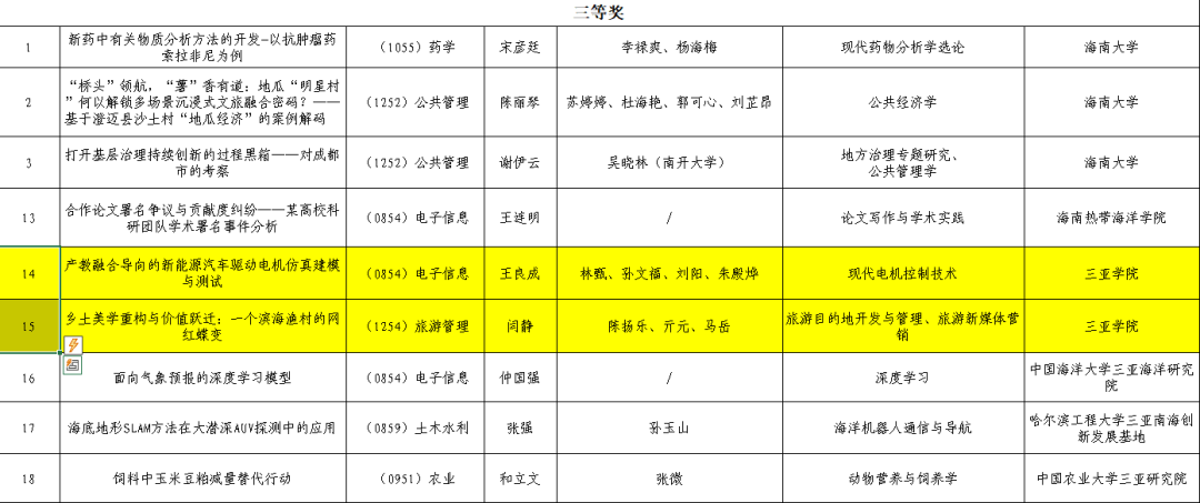 近日,海南省教育廳正式發(fā)布《海南省教育廳關(guān)于公布第四屆“優(yōu)秀研究生導(dǎo)師”和“優(yōu)秀研究生導(dǎo)師團(tuán)隊(duì)”評(píng)選結(jié)果的通知》(瓊教高〔2025〕95號(hào))及《關(guān)于公布第四屆專業(yè)學(xué)位研究生優(yōu)秀教學(xué)案例評(píng)選結(jié)果的通知》(瓊教高〔2025〕96號(hào))。三亞學(xué)院社會(huì)工作專業(yè)蘇米雅教授獲頒“海南省優(yōu)秀研究生導(dǎo)師”稱號(hào),肖芒教授帶領(lǐng)的“農(nóng)村社會(huì)工作研究生導(dǎo)師團(tuán)隊(duì)”入選優(yōu)秀團(tuán)隊(duì);旅游與酒店管理學(xué)院閆靜副教授牽頭的《鄉(xiāng)土美學(xué)重構(gòu)與價(jià)值躍遷:一個(gè)濱海漁村的網(wǎng)紅蝶變》教學(xué)案例,以及新能源與智能網(wǎng)聯(lián)汽車學(xué)院王良成高級(jí)工程師牽頭的《產(chǎn)教融合導(dǎo)向的新能源汽車驅(qū)動(dòng)電機(jī)仿真建模與測(cè)試》教學(xué)案例,均榮獲三等獎(jiǎng)。