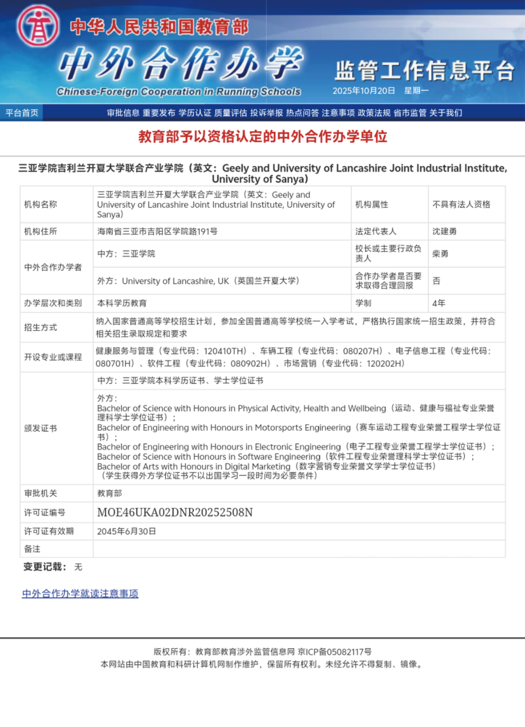 三亞學院吉利蘭開夏大學聯(lián)合產(chǎn)業(yè)學院