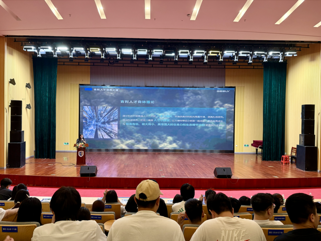 三家吉利控股集團的知名業(yè)務(wù)單位分別作了細(xì)致入微,角度新穎的宣講,三家企業(yè)分別闡明企業(yè)特色亮點,重點介紹了企業(yè)對新人制定的精密培養(yǎng)計劃,校招負(fù)責(zé)人們結(jié)合自身十余年從研發(fā)到生產(chǎn)再到服務(wù)的職業(yè)經(jīng)歷,給同學(xué)們提了“實在建議”——“剛畢業(yè)別急著直奔研發(fā),從服務(wù)、銷售崗起步更能積累底氣,因為你會直面客戶需求,了解車輛維修、制造全流程,這些實戰(zhàn)經(jīng)驗會成為未來職業(yè)的加分項。”更有現(xiàn)場分享了三亞學(xué)院校友在企業(yè)發(fā)展的案例——三亞學(xué)院2021屆畢業(yè)生郝鳳英,通過企業(yè)管培生計劃,如今已成為廣州門店店長,這樣的“學(xué)姐榜樣”讓同學(xué)們對自己的職業(yè)發(fā)展路徑更有信心。