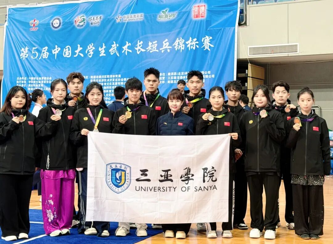 第5屆中國(guó)大學(xué)生武術(shù)長(zhǎng)短兵錦標(biāo)賽三亞學(xué)院代表隊(duì)在10名體育學(xué)子的頑強(qiáng)拼搏、團(tuán)結(jié)協(xié)作下獲得1金4銀5銅,女子團(tuán)體總分并列第三名、男子團(tuán)體總分第八名的佳績(jī),武術(shù)2301趙磊授予優(yōu)秀運(yùn)動(dòng)員、李曉媛副教授授予優(yōu)秀教練員稱(chēng)號(hào)。