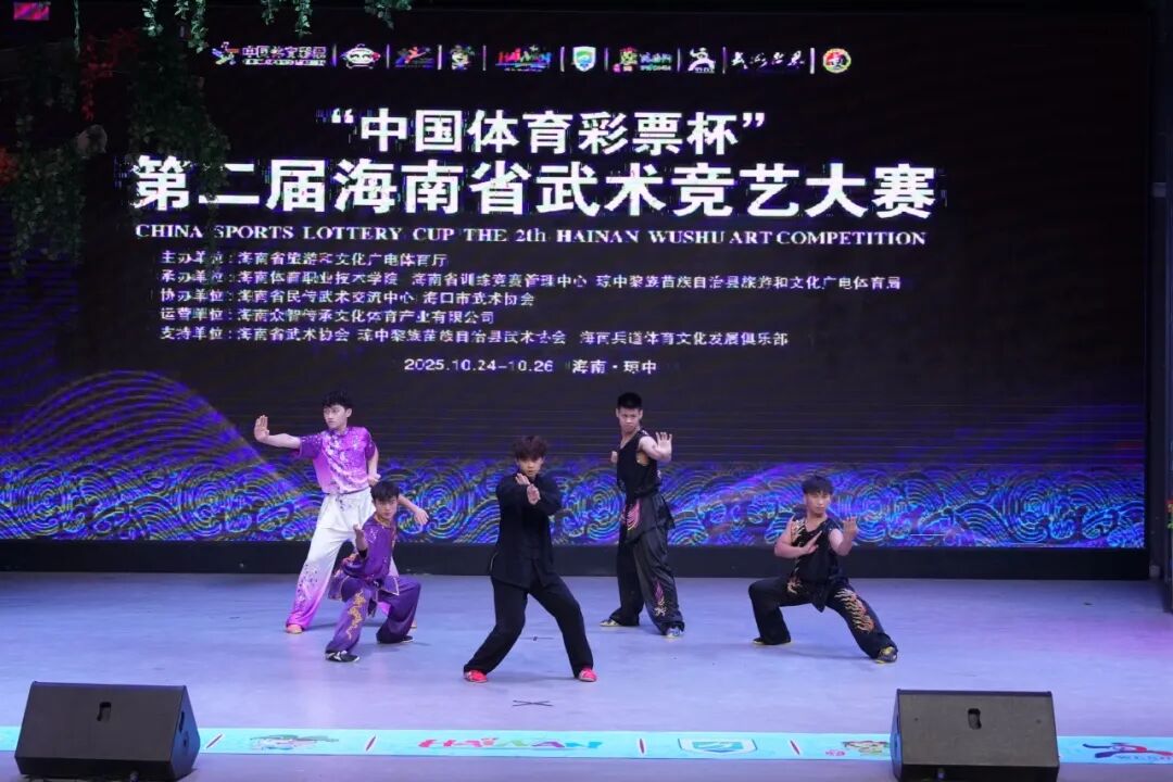 “中國(guó)體育彩票杯”第二屆海南省武術(shù)競(jìng)藝大賽,由三亞學(xué)院武術(shù)2501班黃俊涵、龔樂(lè)高任炫奇、武術(shù)2301陳瀟、劉志江5人創(chuàng)編的競(jìng)藝項(xiàng)目《薪火詠春耀瓊島 拳志丹心鑄國(guó)魂》斬獲一等獎(jiǎng)及最佳表演獎(jiǎng)。